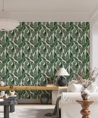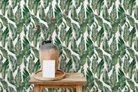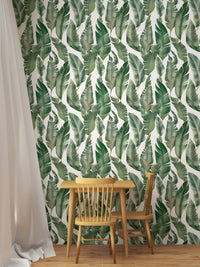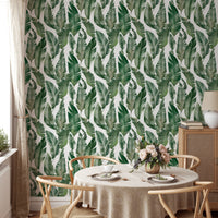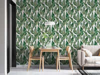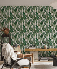 Craft a sanctuary of style with watercolor palm green leaves wallpaper. This vibrant leaves wallpaper, featuring a delicate watercolor design, infuses your walls with the essence of nature's beauty. Each brushstroke captures the lively spirit of lush palms, bringing a breath of fresh air to your interiors. The gentle hues of green create a harmonious backdrop for living spaces and work areas alike, promising a subtle yet striking visual impact. Let the organic patterns be your muse for a room that feels both invigorated and soothingly simple.