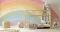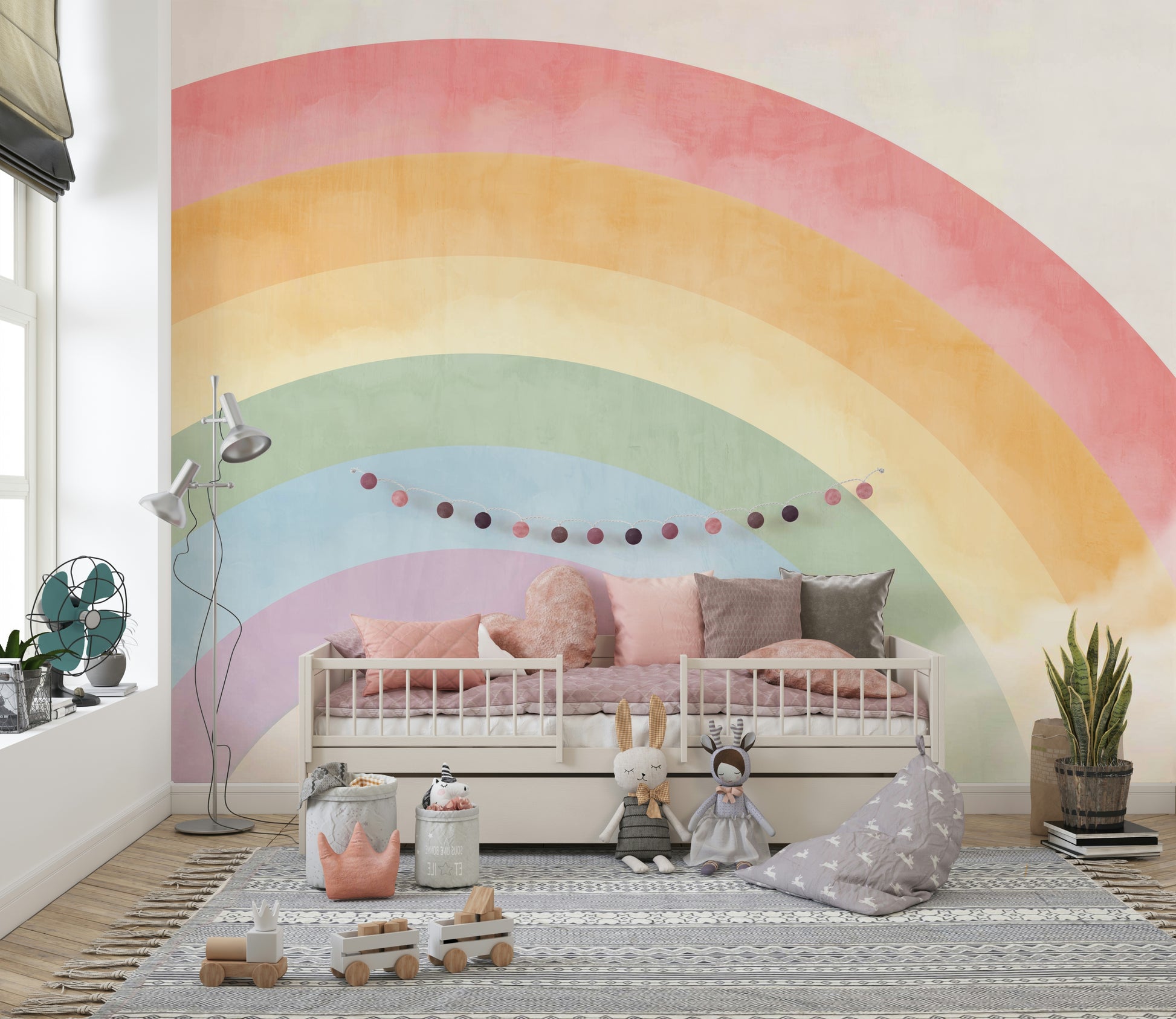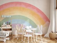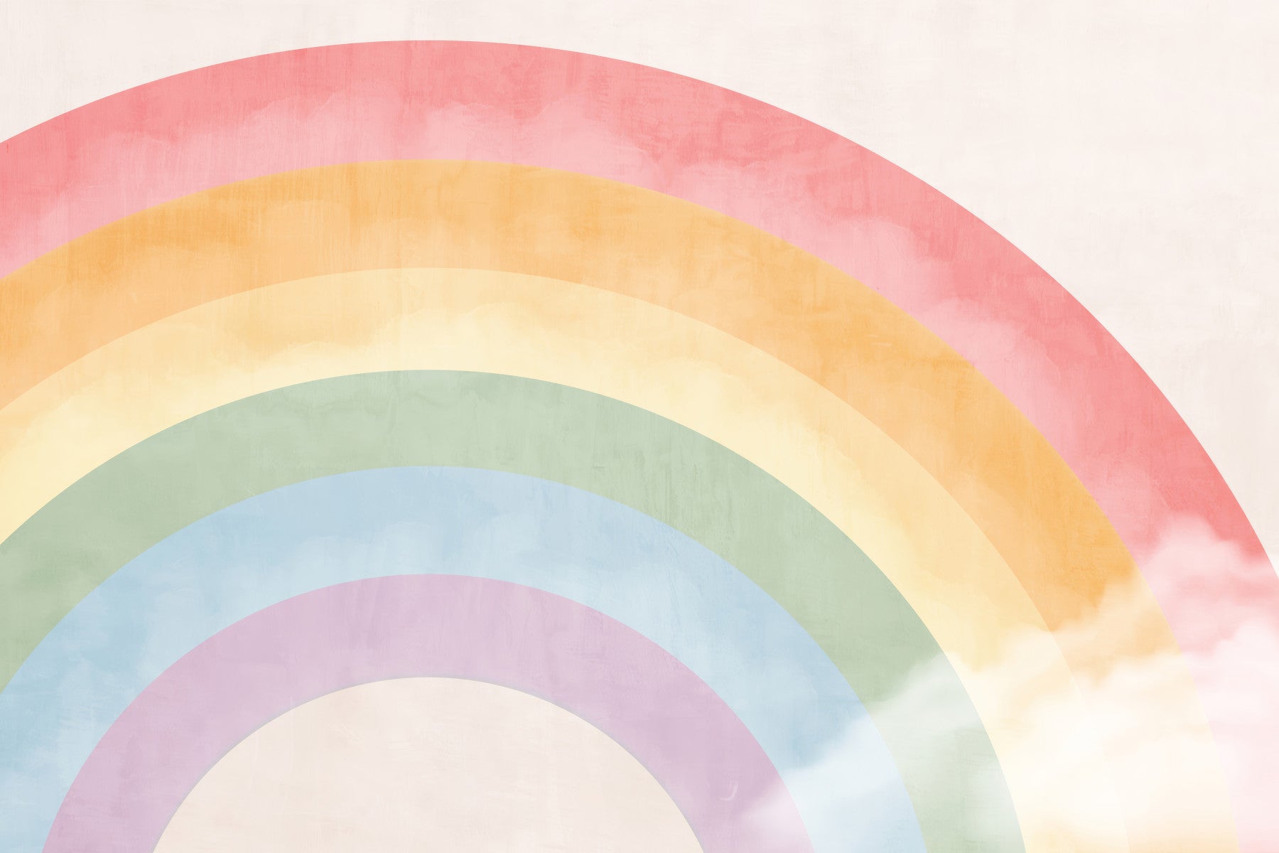 Transform your space with the serene elegance of this watercolor rainbow sky design. The ombre effect blends soft pink, yellow, green, blue, and lavender into a soothing visual gradient. This wallpaper for walls makes a statement in a kids' room, bedroom, or even a home office. The gentle colors and artistic style will complement interiors with a minimalist or contemporary aesthetic, creating a calming atmosphere.