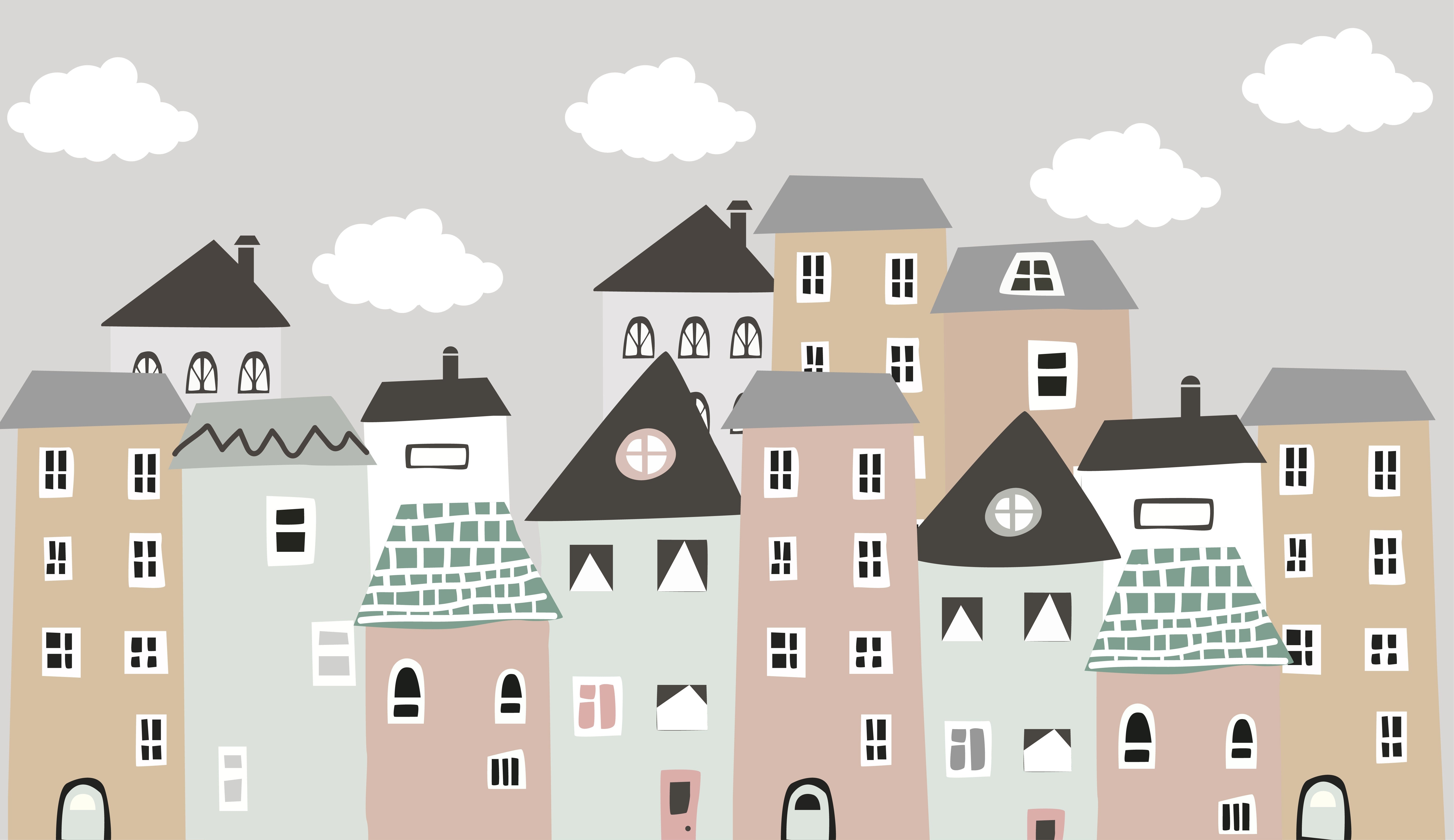 Discover a playful touch for little ones' rooms through the whimsical houses nursery wall mural. This charming kids room wallpaper captures youthful imagination, featuring a quaint village of stylized homes in soothing hues. Perfect for sparking curiosity and storytelling at bedtime, this mural creates a cozy backdrop for play and dreams. Crafted from high-quality materials, it's designed to enchant and inspire. Watch as your nursery becomes a haven for adventure and sweet slumbers, surrounded by this enchanting scene. It's a harmonious blend of color and whimsy, making every day a delightful exploration for your child.