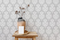 Embrace the subtle opulence of the white-color damask pattern removable wallpaper, a design that brings a refined touch to your home. This damask wallpaper is not just a visual delight but also a testament to practical elegance. Its white-on-grey palette exudes sophistication, making it a versatile choice for any room. The intricate damask design adds a layer of texture and depth, transforming walls into statements of style. Ideal for renters and decor enthusiasts alike, its removable nature allows for an effortless change whenever inspiration strikes.
