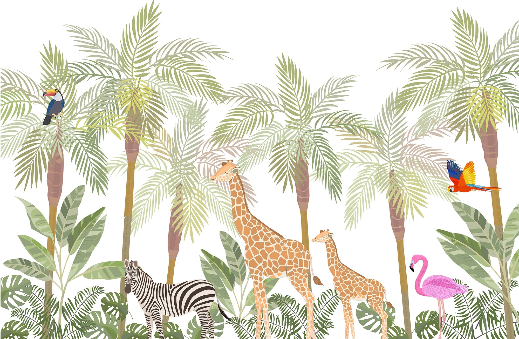 Adventure-themed wildlife mural for kids' rooms and play areas.