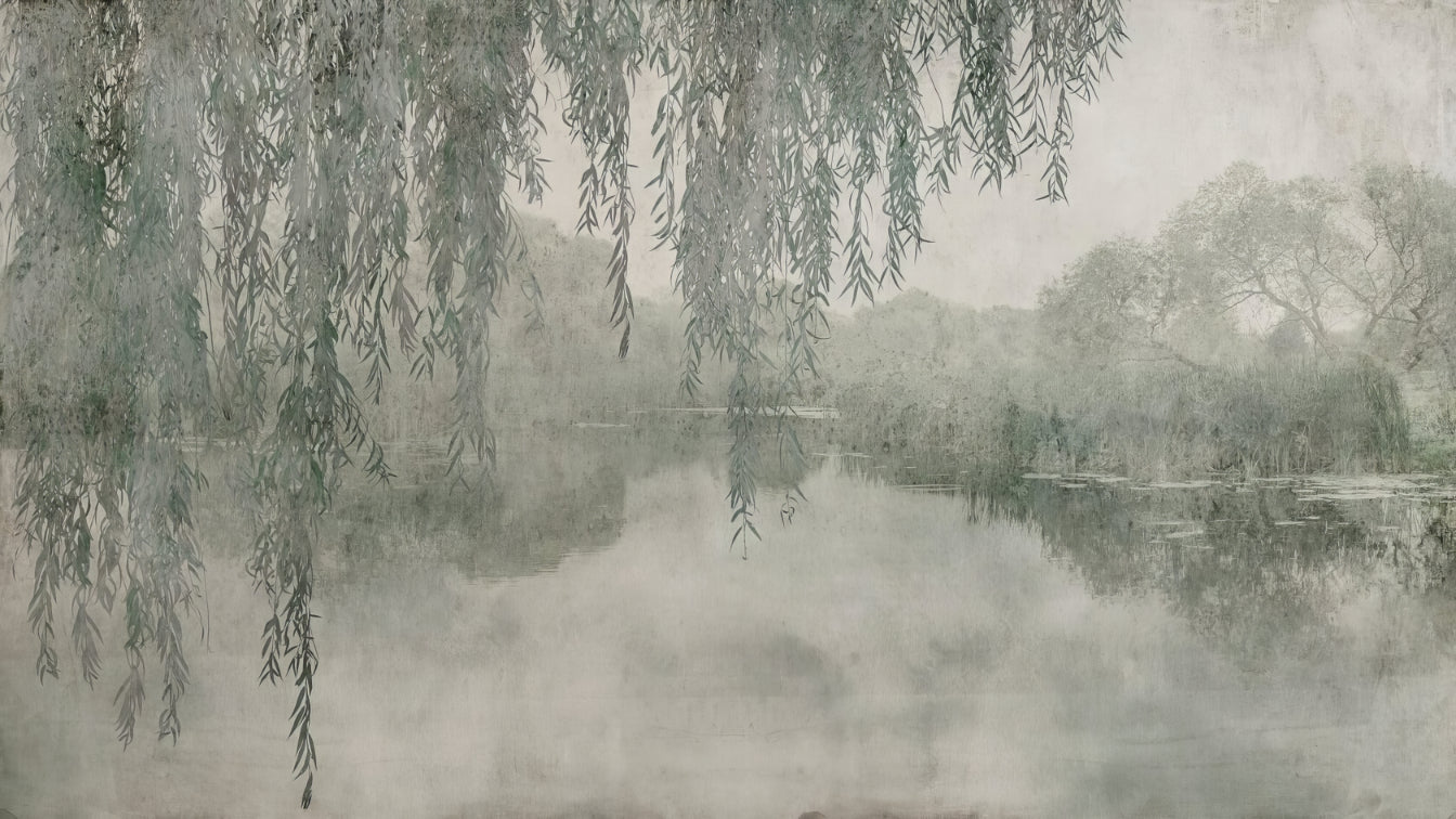 Willow Branches Over Misty Lake Wallpaper