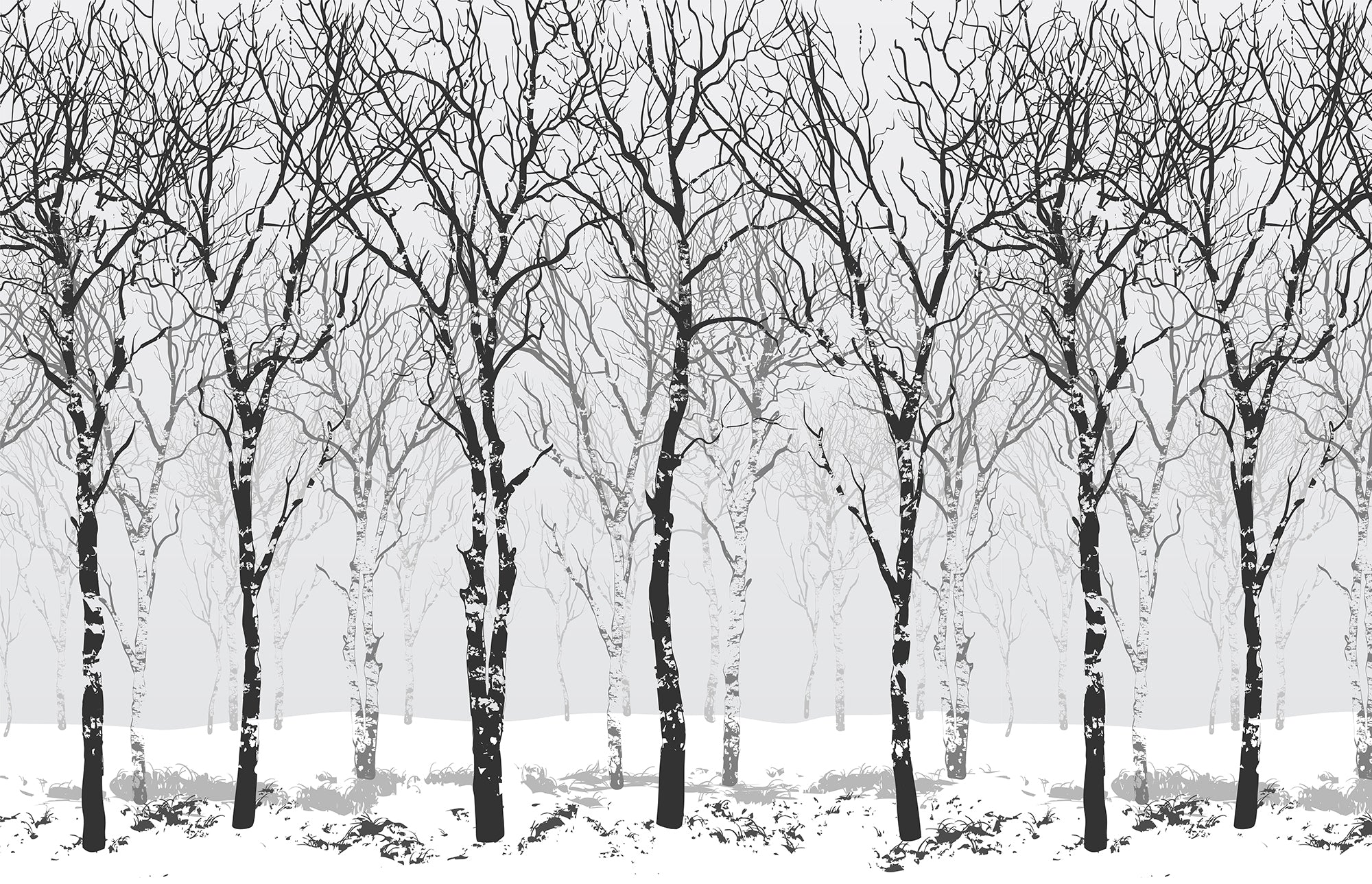 With Winter Birch Trees Wallpaper Murals, you can make any room feel calm and natural. This mural brings the peaceful beauty of a forest inside with its detailed silhouettes of birch trees set against a soft winter background. Its simple black, gray, and white color scheme is classic and elegant, making it great for living rooms, bedrooms, or offices. The finely detailed trees and soft textures give the walls depth and make them look stylish while still simple. This painting is made of high-quality materials so that it will last, is easy to put up, and creates a warm atmosphere that works well with modern or minimalist decor. Add a wintery touch to your walls with birch tree charm.