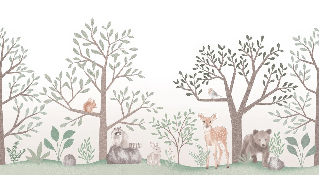Make the haven of your little one shine with the woodland creatures wall mural, the most playful choice for kids room mural wallpaper. Envision a gentle touch of nature's charm where friendly forest animals frolic among towering trees, crafting a scene of adventure right on your walls. This mural will be the backdrop to so many bedtime stories, with the likes of fawns, raccoons, and fluffy bunnies being the stars. Each brushstroke brings the magic of the forest into a child's personal space, inspiring creativity and curiosity. Perfect for sparking young imaginations, this wallpaper makes every day a delightful walk through the woods.